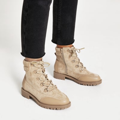 Light beige chunky lace-up hiking boots river island hiking boots