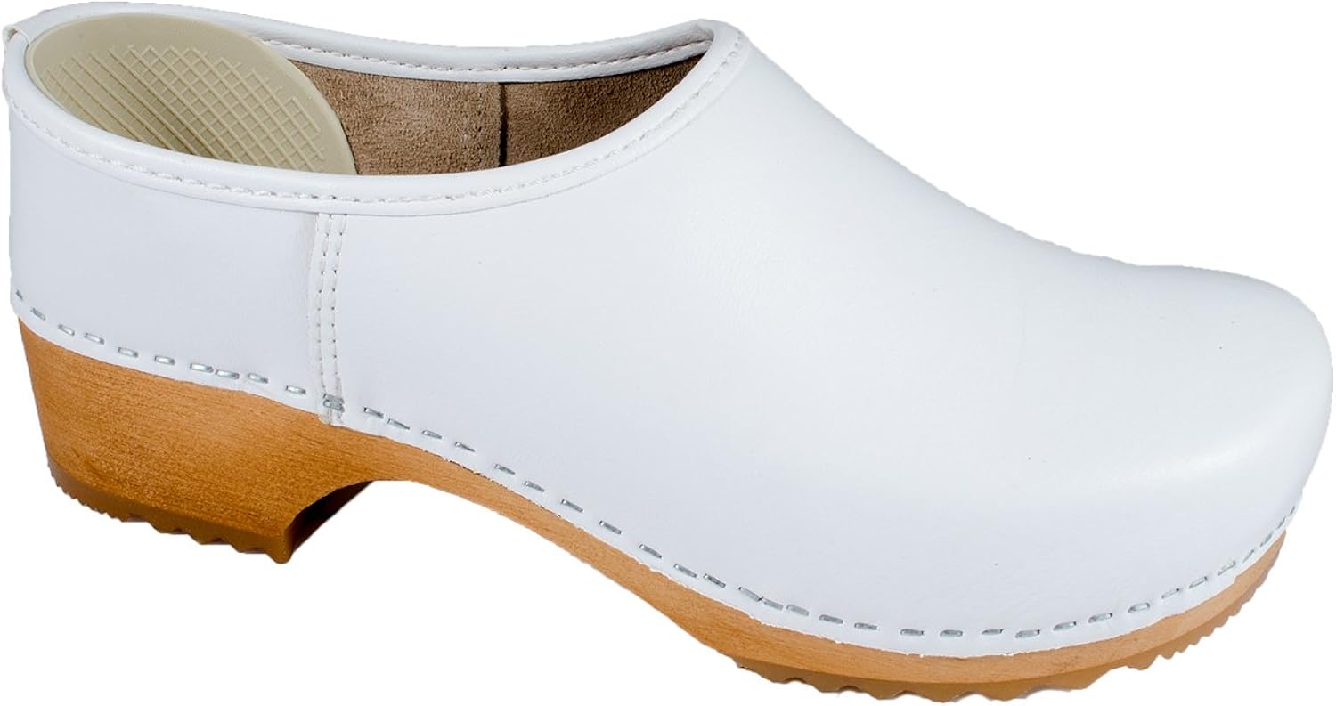 white clogs wooden heel