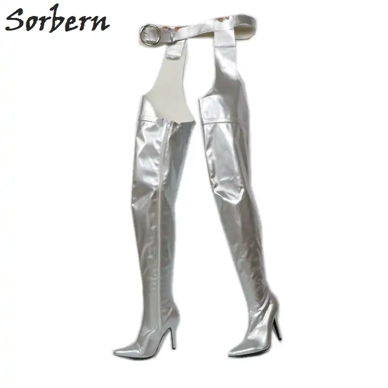 Sorbern Silver Belt Thigh High Boots waist high boots with belt
