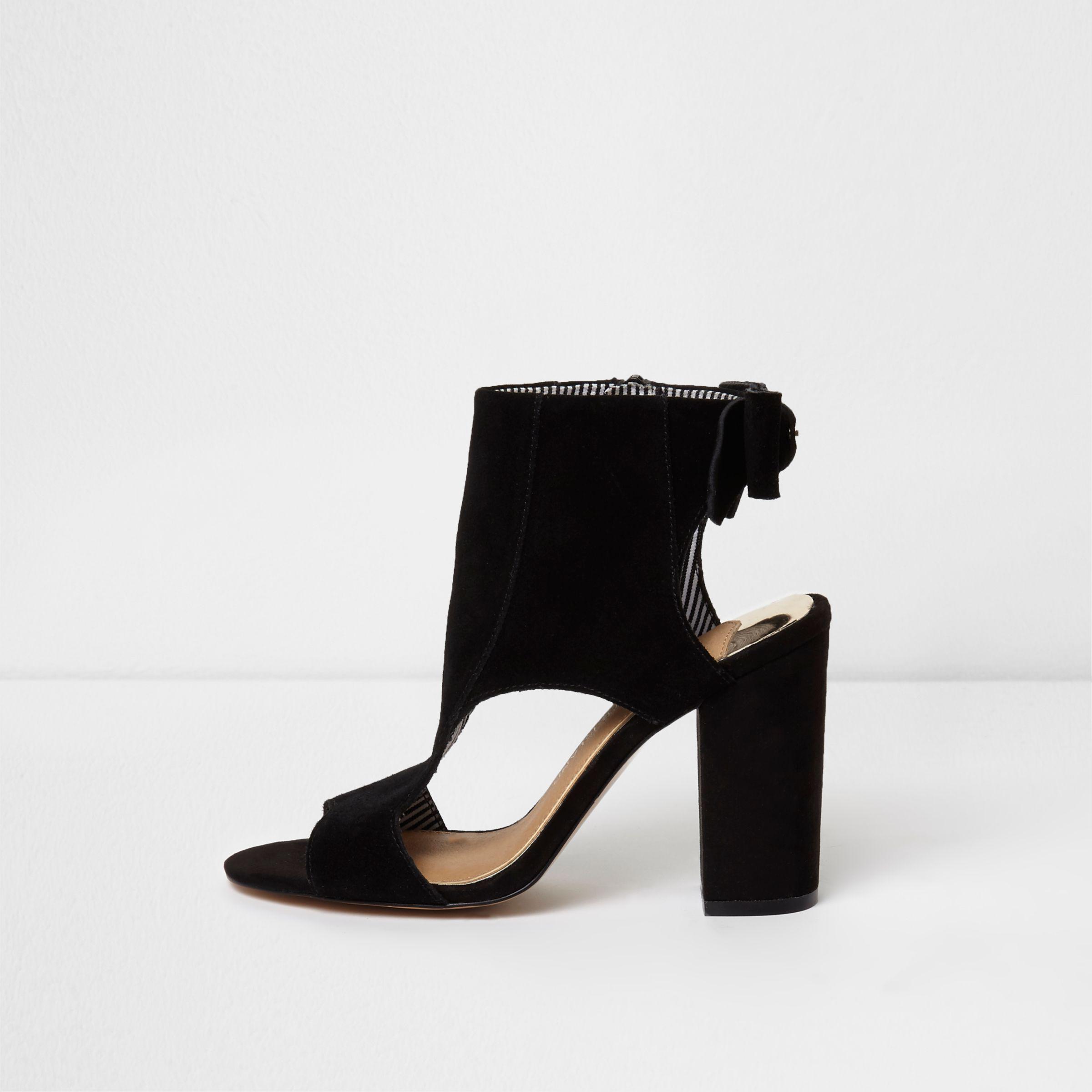 Black Bow Back Block Heel Shoe Boots - Lyst river island bow boots