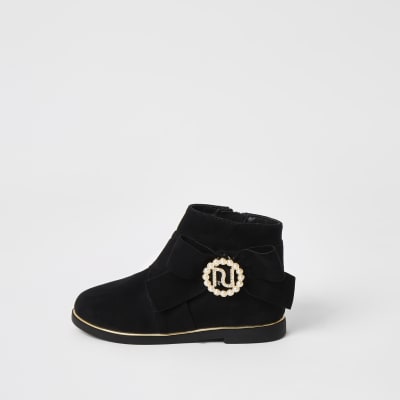 Mini girls black RI pearl bow boots river island bow boots