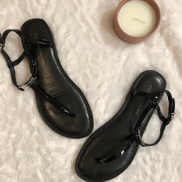 black thong sandals with ankle strap