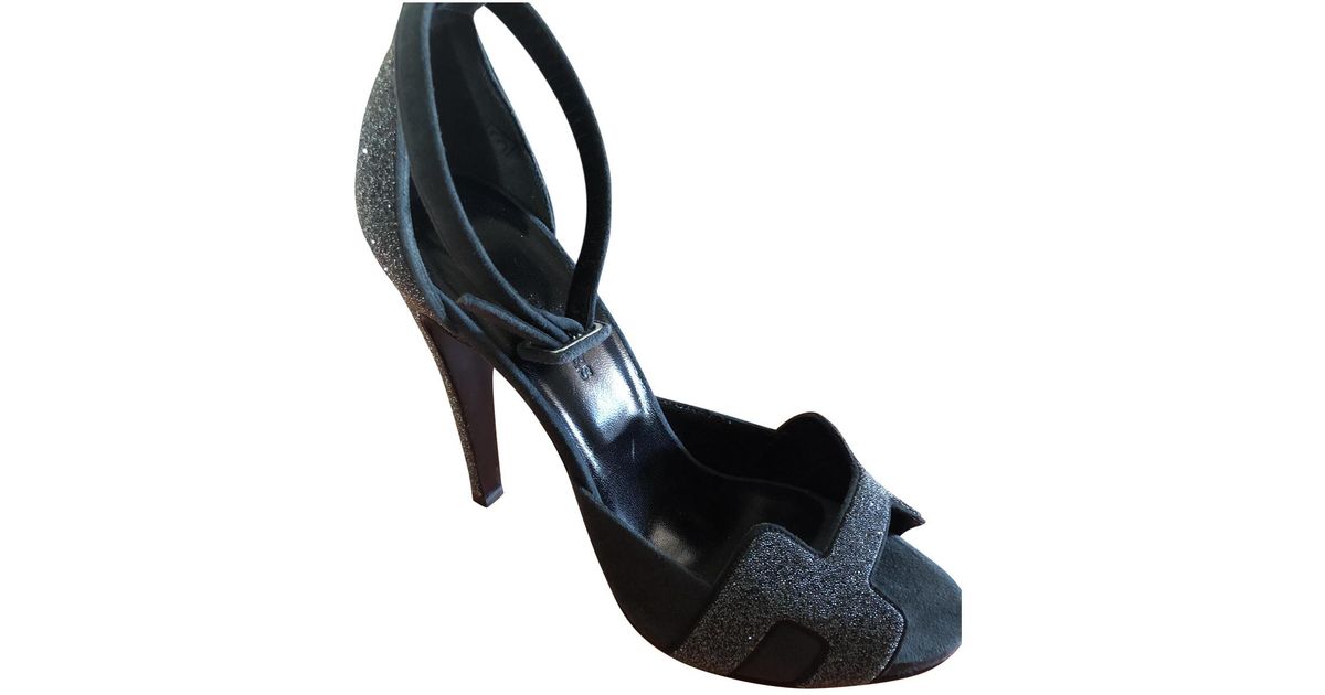 HERMES Sandal H Oran Black Leather hermes glitter sandals
