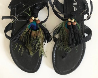 Peacock sandals | Etsy peacocks black sandals