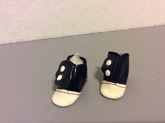 Doll Shoes 1 pair of black \u0026 white white vinyl shoes
