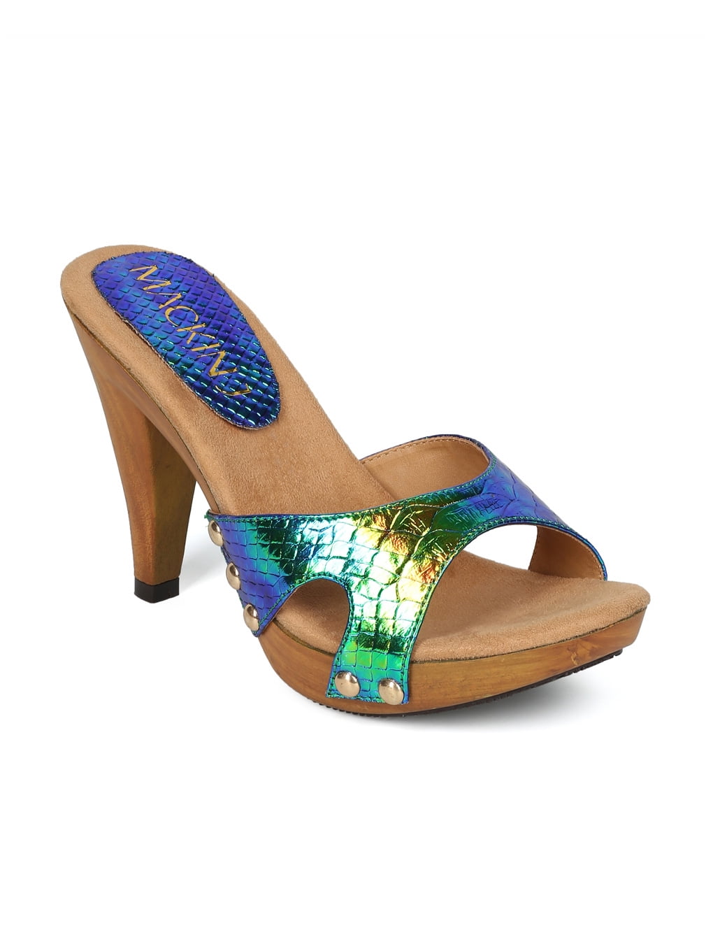 Women Iridescent Snakeskin Open Toe Cut iridescent snakeskin heels