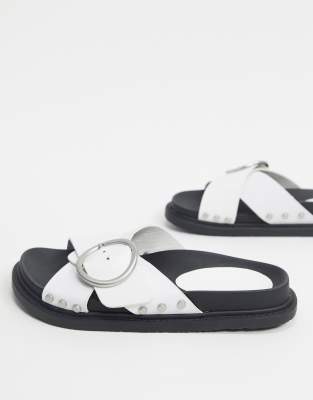 Truffle Collection buckle flat sandals white 2 buckle sandals