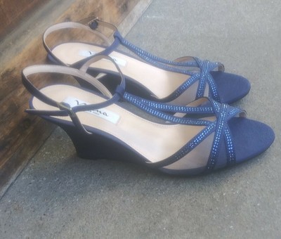 Nina Blue Satin Diamante Wedge Strappy blue diamante sandals