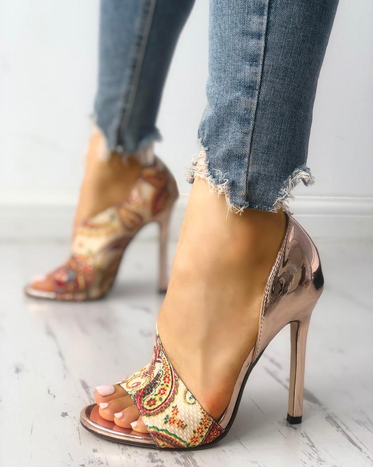 Tribal Print Peep Toe Thin Heeled Sandals ethnic print peep toe