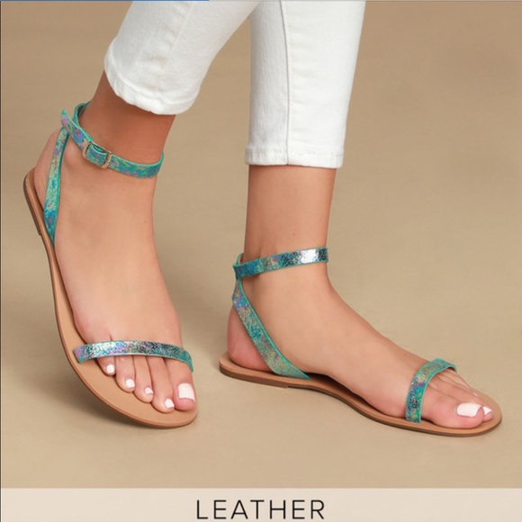 Lulus Hologram Leather Flat Ankle Strap holographic flat sandals
