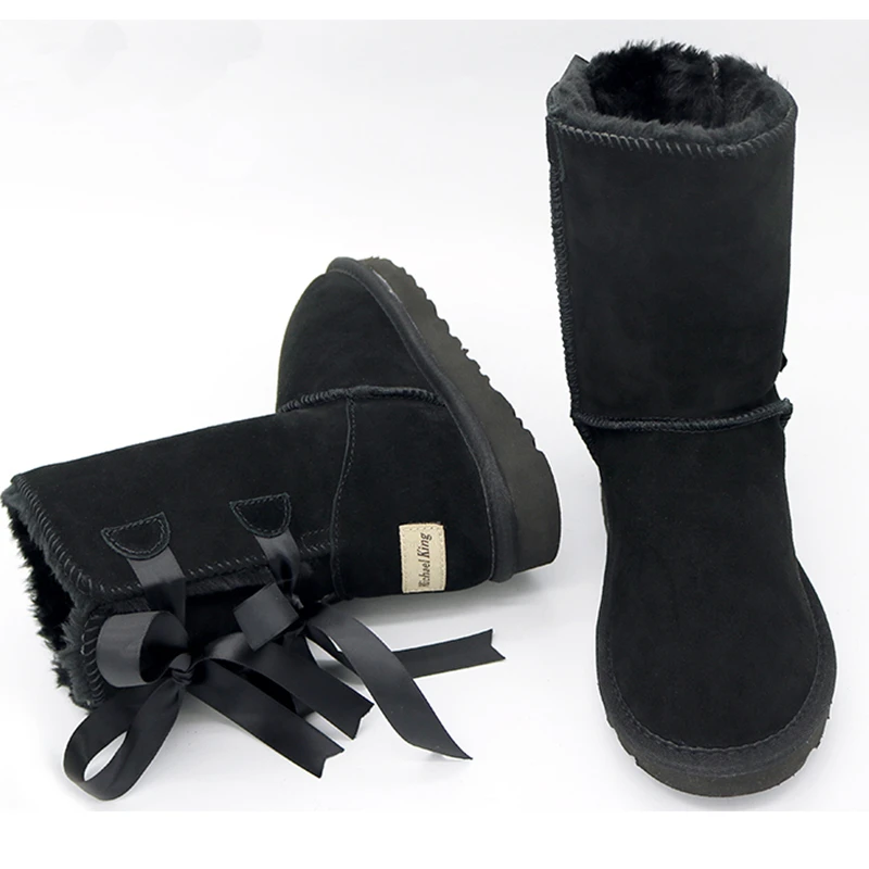 Genuine Cowhide Leather Mid calf boots snow shoes womens sale