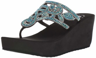 Yellow Box Blue Platform Wedge Women's yellow box platform sandals