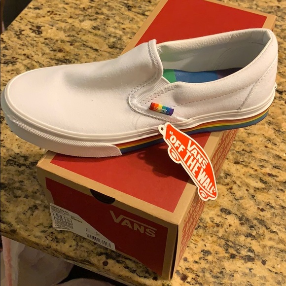 Vans Slip On Rainbow Skate Shoe - White rainbow vans size 6