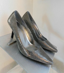 Pointed Toe Heel Pewter Met calvin klein slip on pumps